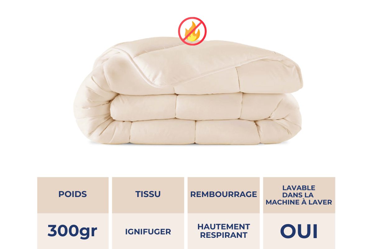 • Le tissu 100% ignifuge de cette couette hiver garantit une agréable sensation de fraîcheur et de douceur sur la peau