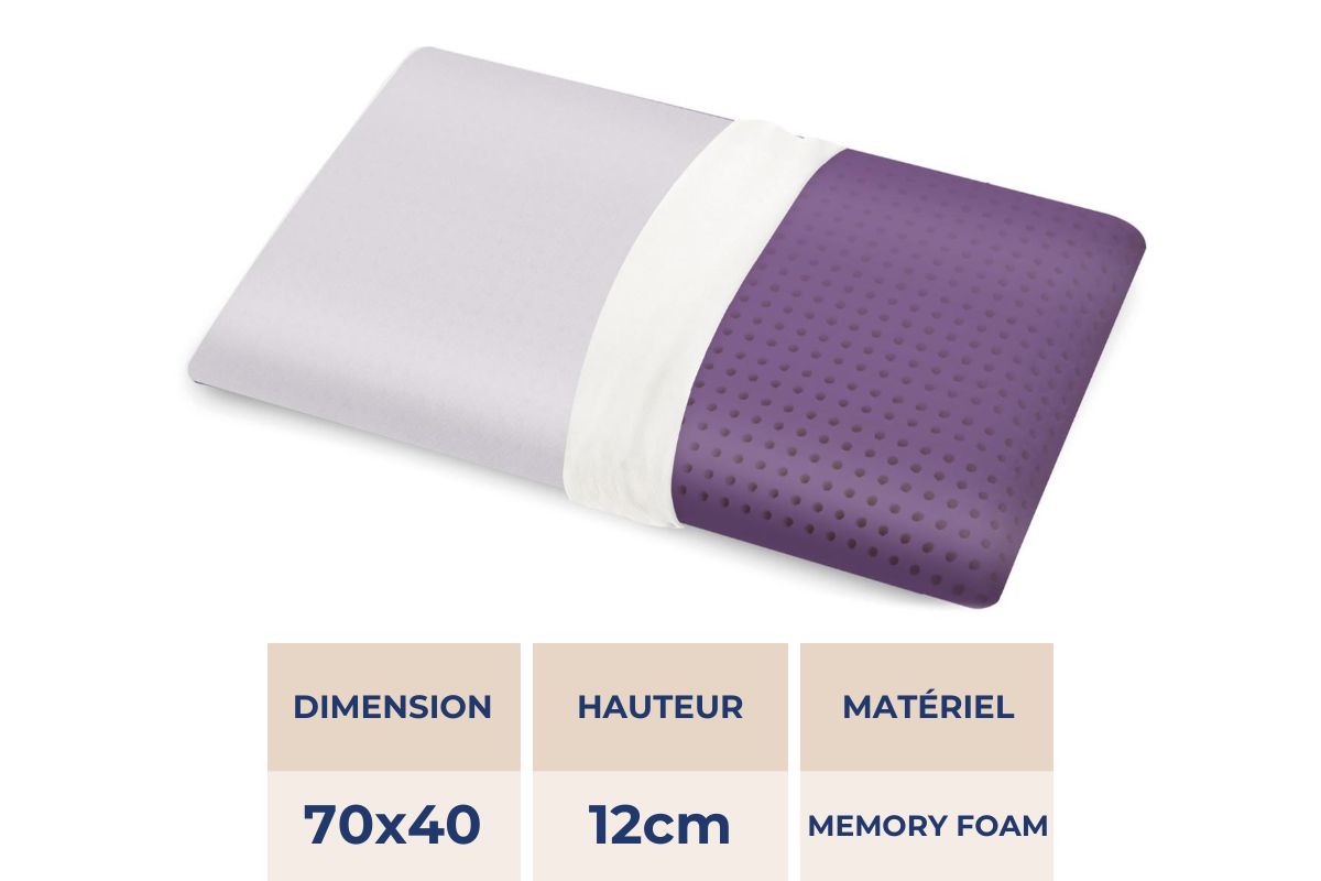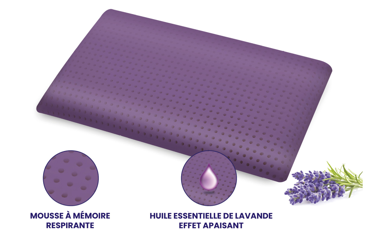 - Oreiller en mousse à mémoire de forme à base d’eau enrichi en essence naturelle de lavande favorise le sommeil et la relaxation