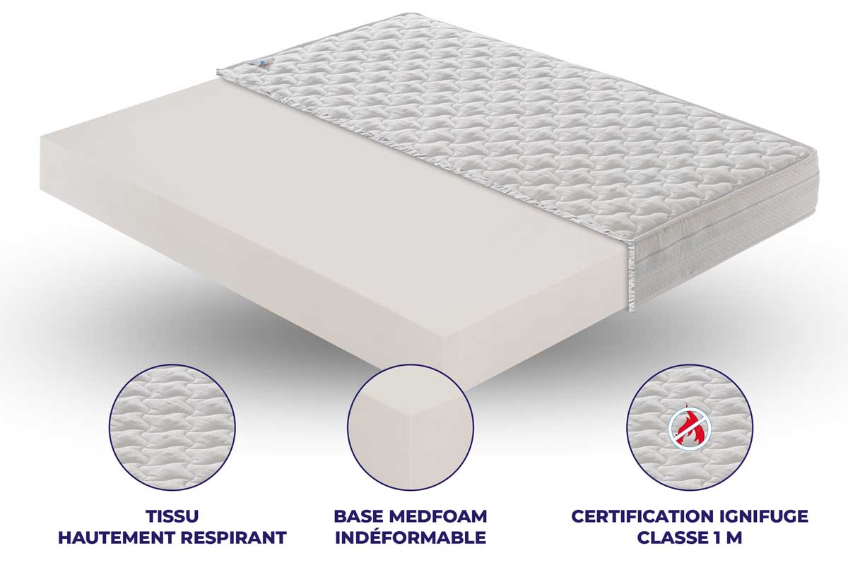 - Le modèle « H20 » est un matelas en polyuréthane ignifuge