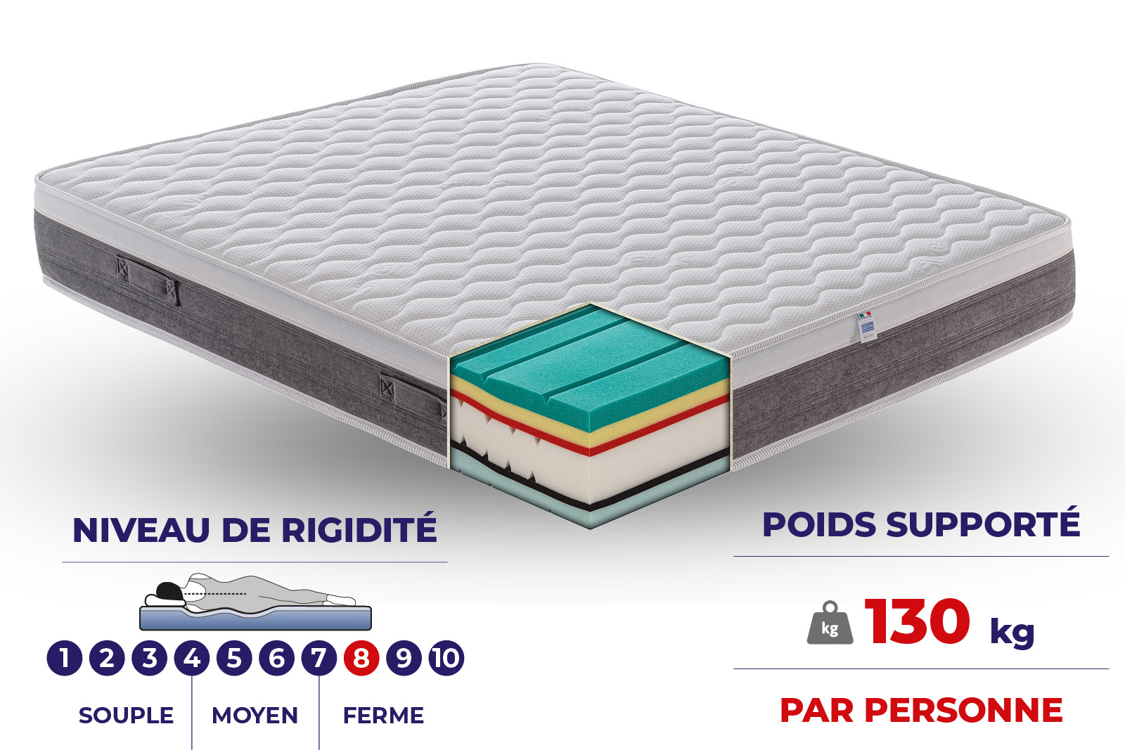 La capacité portante est le degré de flexibilité du matelas et doit être choisie en fonction du poids corporel et des préférences de l’utilisateur.